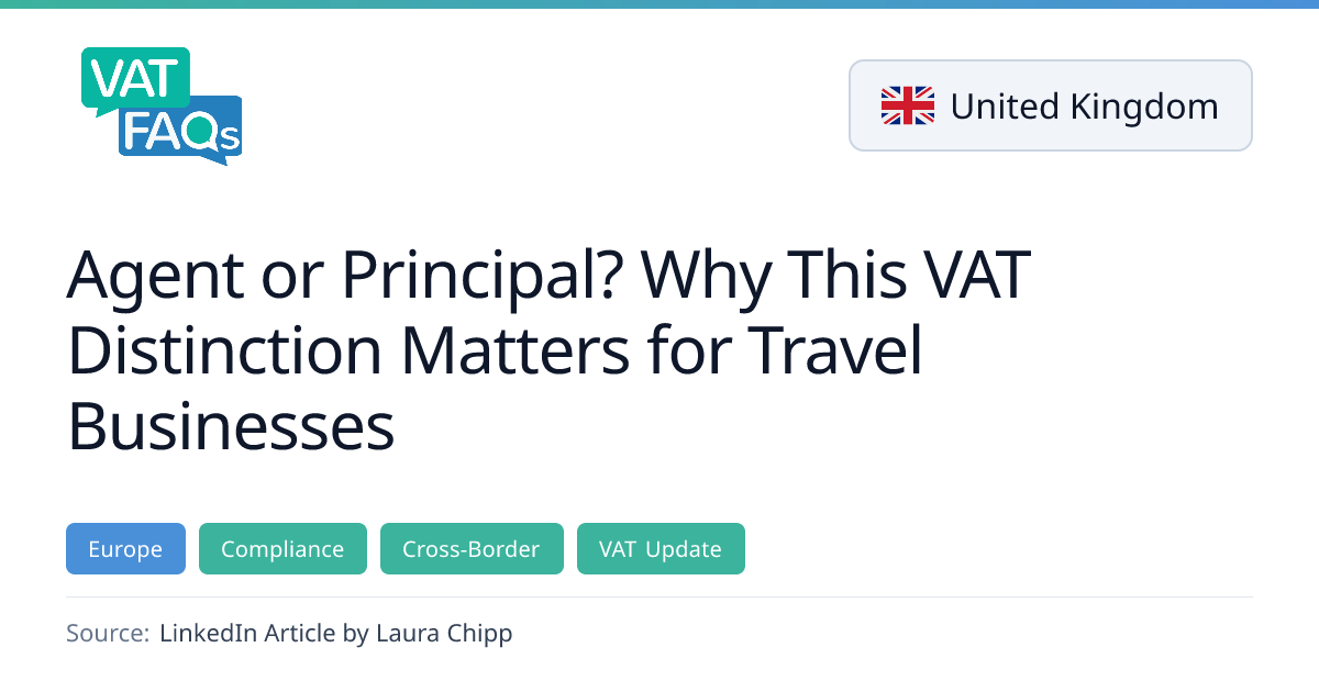 The article explains how the VAT classification of a travel business as an agent or principal determines whether VAT is charged on the full travel supply or only on the intermediary commission. It outlines the key contractual and commercial factors that influence this classification and highlights the financial implications for finance teams, including VAT accounting, input VAT recovery, and the applicability of the Tour Operators Margin Scheme (TOMS).