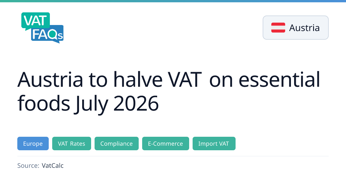 The Austrian government announced that it will halve the VAT rate on essential food items as part of its fiscal policy. The change is expected to provide relief to consumers on basic groceries. No further details on the effective date or specific rates were disclosed in the article.
