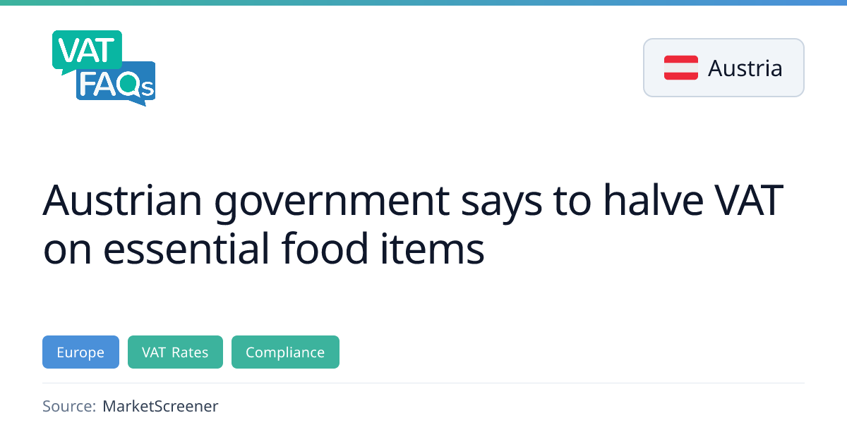 The Austrian government announced that it will halve the VAT rate on essential food items as part of its fiscal policy. The change is expected to provide relief to consumers on basic groceries. No further details on the effective date or specific rates were disclosed in the article.