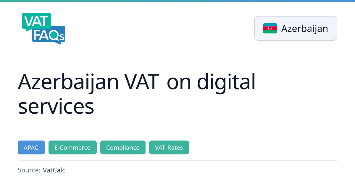 Azerbaijan’s Parliament has approved a new VAT regime for non‑resident digital service providers, requiring local registration, charging, collecting and remitting VAT from 1 January 2026. The change replaces the previous withholding‑tax or optional‑registration system, introduces a USD 10 000 annual sales threshold and ends the B2B reverse charge that had been in place since 2023. The current VAT rate on digital services remains 18%.