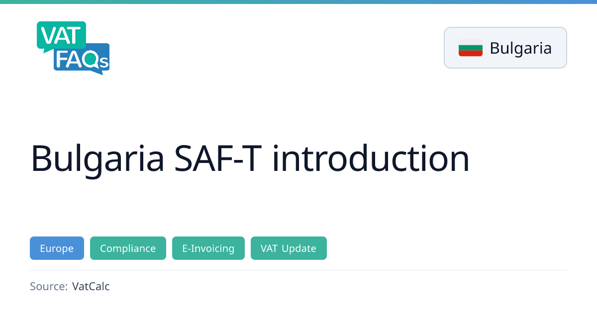 Bulgarian National Revenue Agency has issued new guidance amending SAF‑T technical documentation, introducing schema version 1.0.2 as the mandatory format for all SAF‑T submissions. The updated specifications take effect on 1 April 2026, with deadlines set in the Tax and Social Security Procedure Code. Businesses and software providers have until that date to align their systems with the new schema.