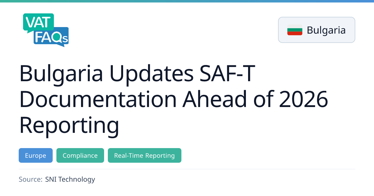 Bulgarian National Revenue Agency has issued new guidance amending SAF‑T technical documentation, introducing schema version 1.0.2 as the mandatory format for all SAF‑T submissions. The updated specifications take effect on 1 April 2026, with deadlines set in the Tax and Social Security Procedure Code. Businesses and software providers have until that date to align their systems with the new schema.