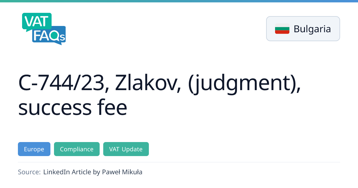 The European Court of Justice issued a preliminary ruling on Feb. 9, 2026, concerning Bulgarian VAT liability for third parties. In Case C‑121/24, a road‑transport company was assessed for unpaid VAT after the supplier was removed from the commercial register. The ruling clarifies that the taxpayer can be liable for the supplier’s unpaid VAT when the supplier fails to pay the chargeable VAT.