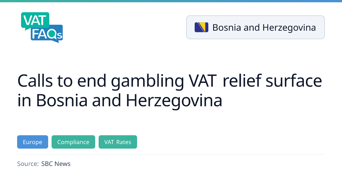 Bosnia and Herzegovina MPs have tabled a proposal to abolish the gambling sector's VAT exemption, aiming to bring the activity under standard VAT rules. The amendment would raise Federation revenue to at least KM 150 million annually, with an extra KM 50 million for local communities, and redirect funds to healthcare and social initiatives. The move follows a 2025 proposal that allocated 60% of gambling tax to the treasury, 20% to social initiatives, and 20% to specialised healthcare.