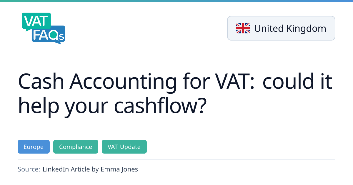 The article explains the UK Cash Accounting for VAT scheme, which allows VAT-registered businesses to pay VAT only when they receive payment, aligning tax liability with cash flow. It highlights the £1.35 million projected turnover threshold, the scheme’s benefits and limitations, and ongoing discussions about raising the eligibility threshold.