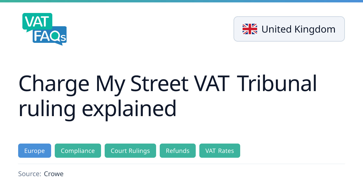 On 9 March 2026 the First‑Tier Tribunal ruled that the reduced 5% VAT rate on electricity applies to public EV charging points, extending the domestic rate to these supplies. The decision is based on the 1,000 kWh per customer per month threshold and could allow charging providers to claim refunds for up to four years. The ruling is not yet legally binding until HMRC accepts it or the case is finalized.