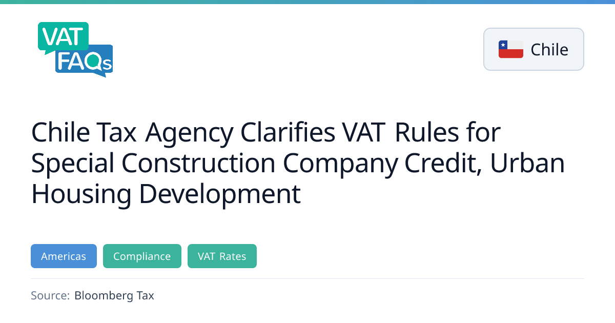 The Chilean Internal Revenue Service issued Letter No. 285 on Feb. 4, clarifying VAT rules for the special construction company credit (CEEC) and urban housing development. The letter confirms that CEEC can be requested at 32.5% or 16.25% if the development is related to housing, and that construction of social housing under state subsidies is not treated as a general construction contract aimed at housing.