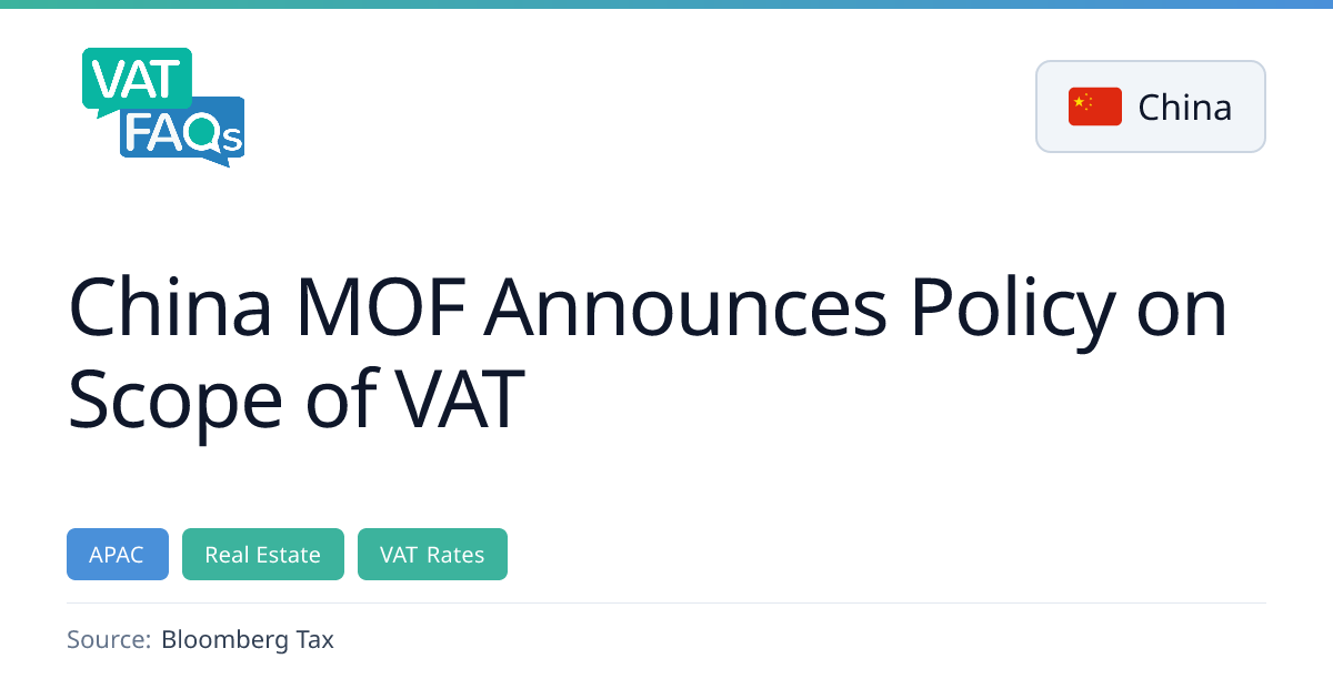 The Chinese Ministry of Finance issued Announcement No. 9/2026 on January 31, 2026, defining the goods and services subject to the 9% VAT rate. The policy lists a wide range of agricultural products, utilities, media, and real estate transactions that will be taxed at this rate.