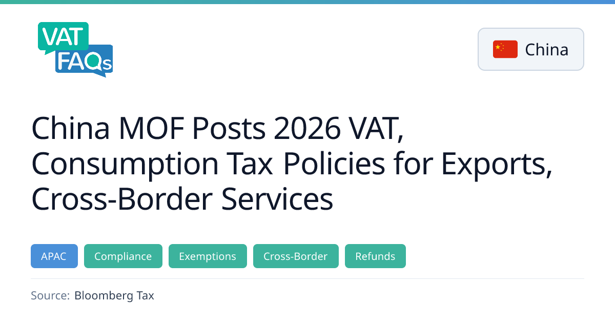 China’s Ministry of Finance issued Announcement No. 11 on 31 January 2026, establishing new VAT and consumption tax rules for exported goods and cross‑border services. The announcement, effective 1 January 2026, sets criteria for VAT exemption, outlines refund rates and formulas, specifies consumption‑tax exemptions, and requires export tax refunds to be claimed within 36 months. It also repeals earlier notices.