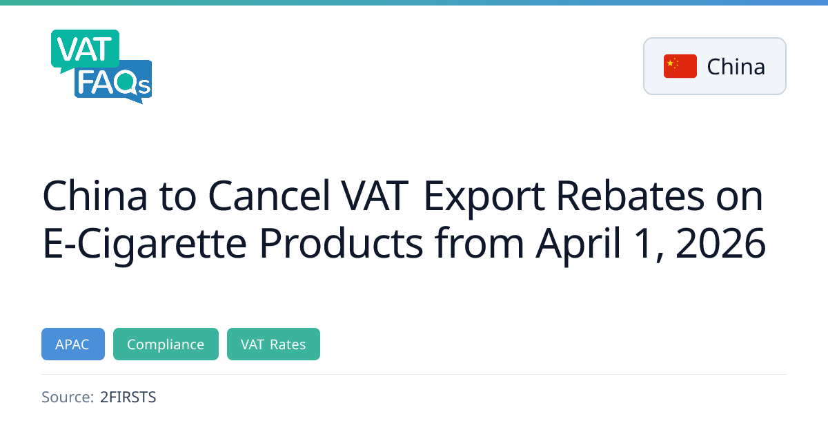 From 1 April 2026, VAT export rebates for e‑cigarette products will be cancelled.