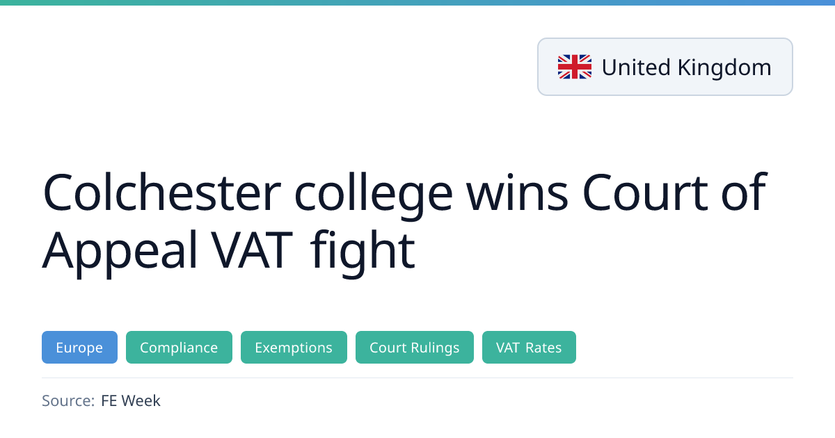 The Court of Appeal has ruled in favour of Colchester Institute in a VAT dispute with HMRC, allowing the college to reclaim VAT on pre‑2010 capital projects. The decision could extend to an estimated 20‑30 other colleges and raises uncertainty for charities that may lose VAT discounts. The ruling centres on the Lennartz mechanism, which HMRC had withdrawn in 2010.
