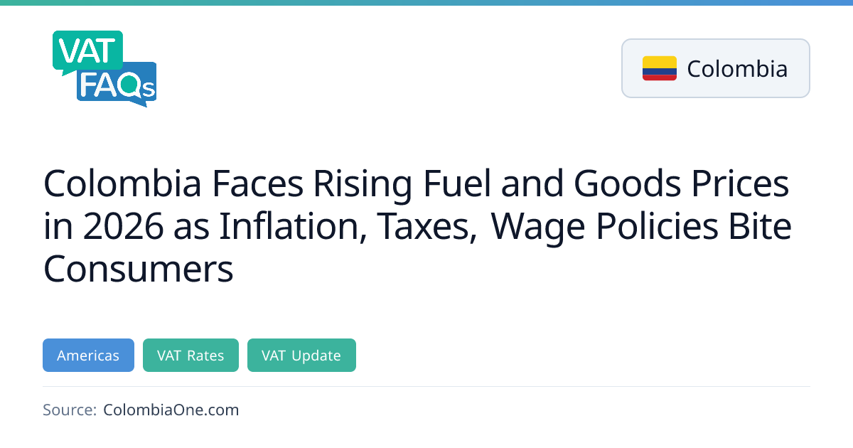 Colombia will impose a 10% VAT on gasoline and diesel from Jan 1 2026, alongside a 90‑peso per gallon gasoline and 99‑peso per gallon diesel price adjustment. The government also raised the minimum wage by 22.7% to 1.75 million pesos, while inflation is projected to stay above 4% by year‑end, prompting potential price‑control measures.