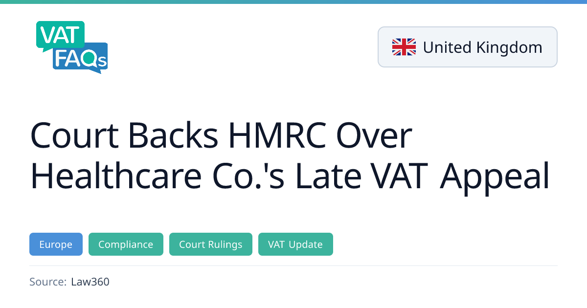 A UK court upheld HMRC's decision to reject a private healthcare company's late VAT appeal, confirming that the company must meet strict conditions to challenge the assessments and the £1.3 million penalty. The ruling reinforces HMRC's authority to enforce timely appeals and the penalties for late submissions.