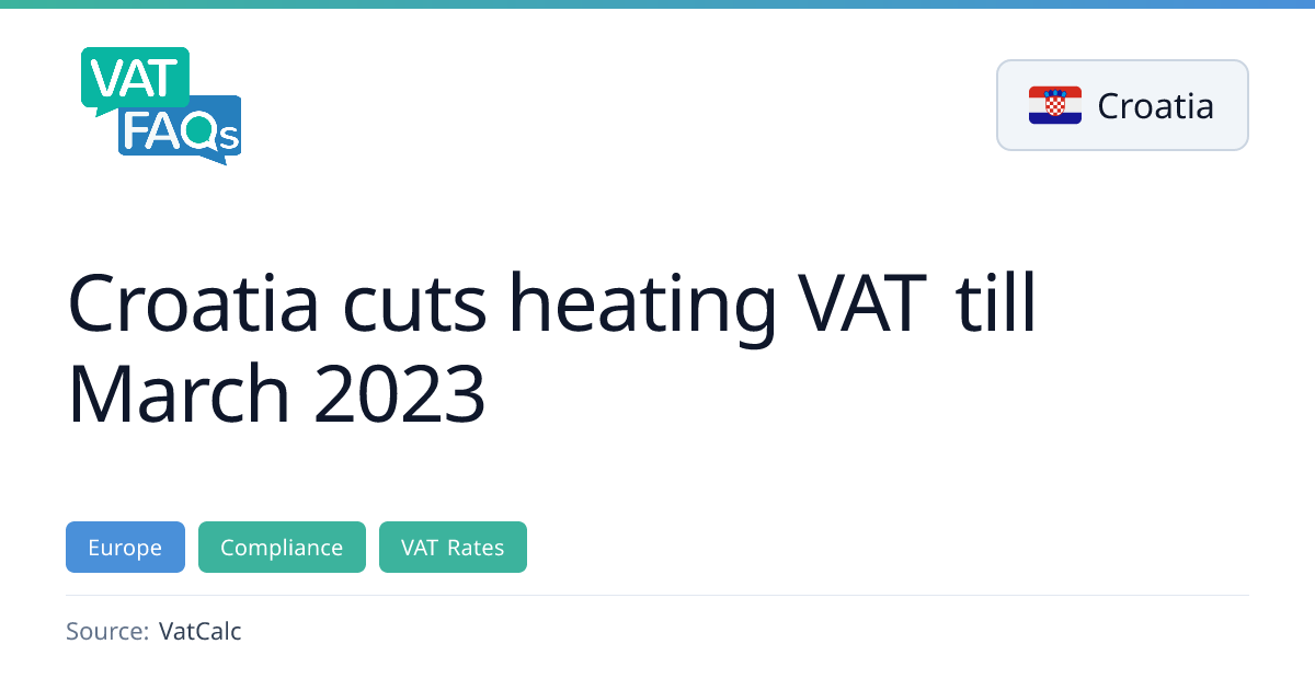 Croatia has extended its VAT reduction on heating and gas until 31 March 2027. The heating VAT remains at 5% (down from 25%) and gas VAT is temporarily cut to 5% before returning to 13%. The cuts cost about €289 million.