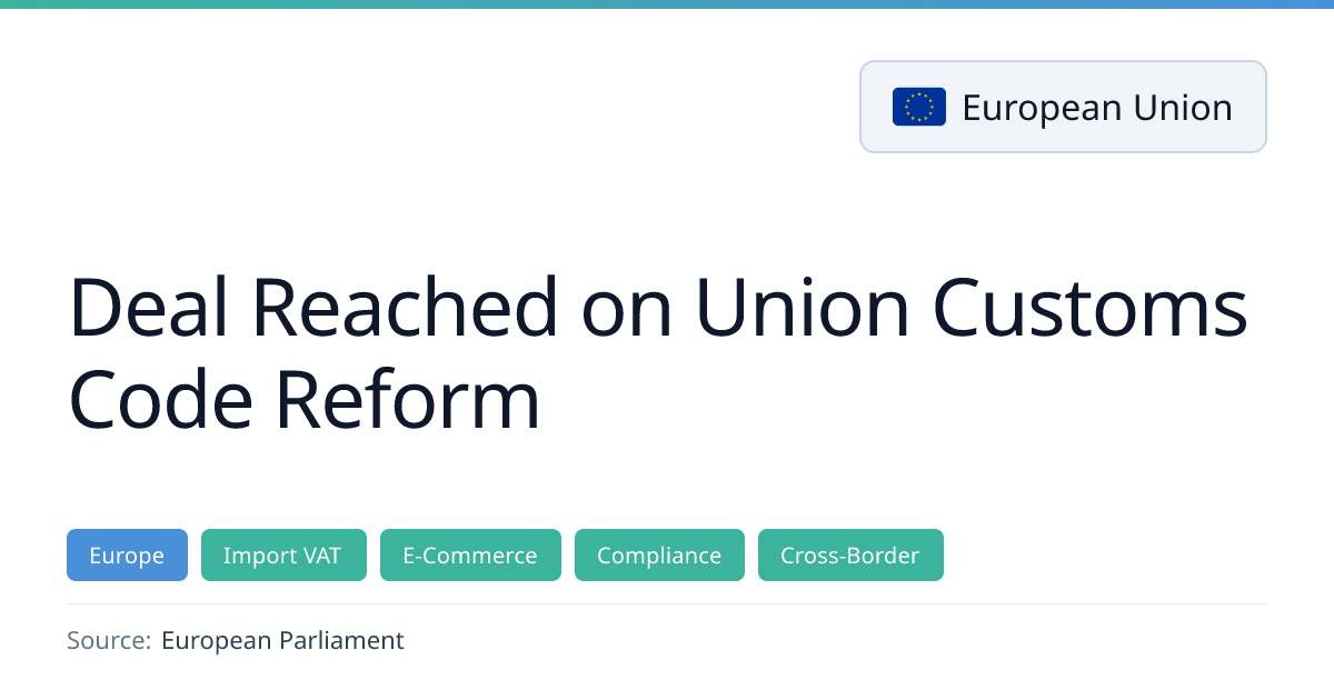 The European Parliament and Council have agreed on a comprehensive reform of the EU Customs Code aimed at tackling the surge in e‑commerce parcels. Key measures include a new handling fee for individual parcels from non‑EU countries, treating e‑commerce platforms as importers, a new EU Customs Authority in Lille, and a customs data hub to be mandatory by 2034.