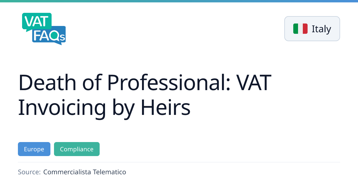 Italian tax authority clarifies that heirs of a deceased professional must issue VAT invoices on behalf of the deceased and, if the VAT number has ceased, must request its reactivation to pay tax on compensation received after death.