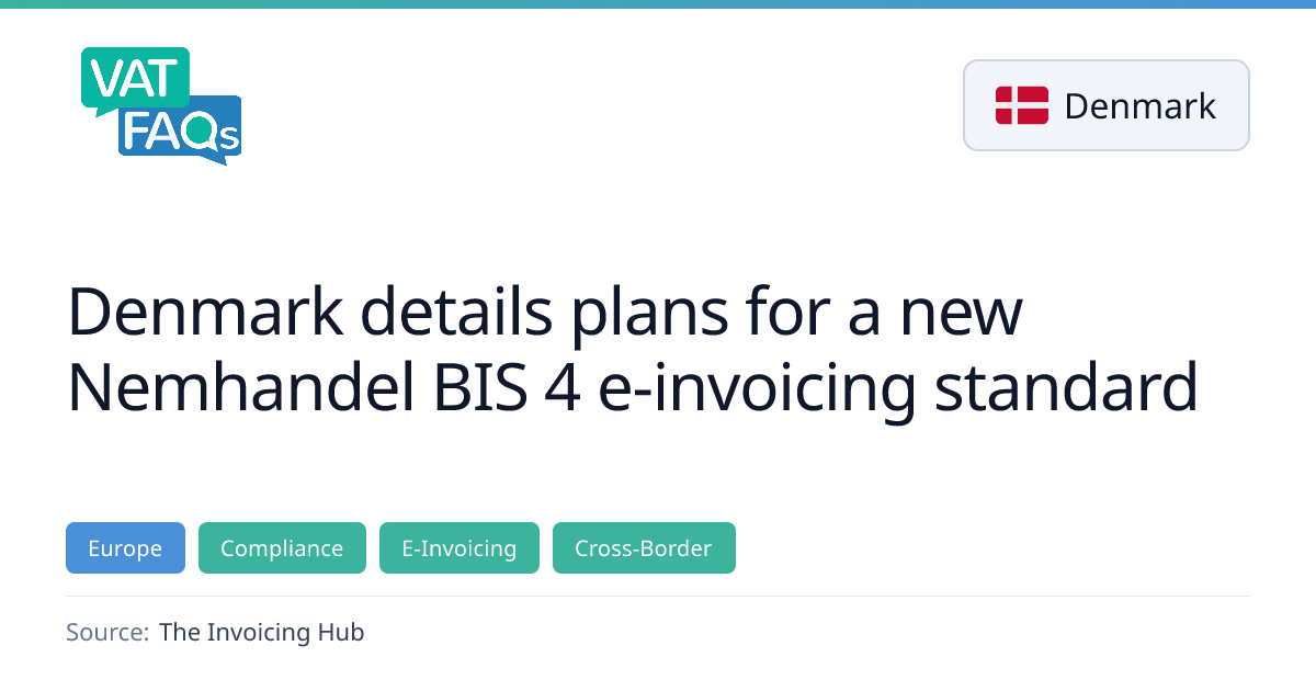 Denmark has cancelled the planned OIOUBL 3.0 rollout and announced a new Nemhandel BIS 4 e‑invoicing standard based on EN 16931 and Peppol BIS 4.0. The transition will occur in phases from 2026 to 2030, including a shift to an opt‑out registration model and the final phase of the Digital Bookkeeping Act in 2026.
