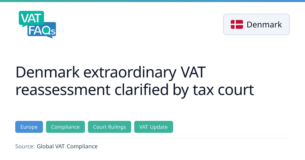 The Danish National Tax Court confirmed that extraordinary VAT reassessment is permissible when gross negligence is proven. In a case involving a Danish airline, the court upheld the tax authorities’ findings that the company used incorrect input VAT deduction percentages, failed mandatory year‑end adjustments, and understated its liability. The decision clarifies that repeated errors and prohibited energy‑tax deductions justify extraordinary reassessment.