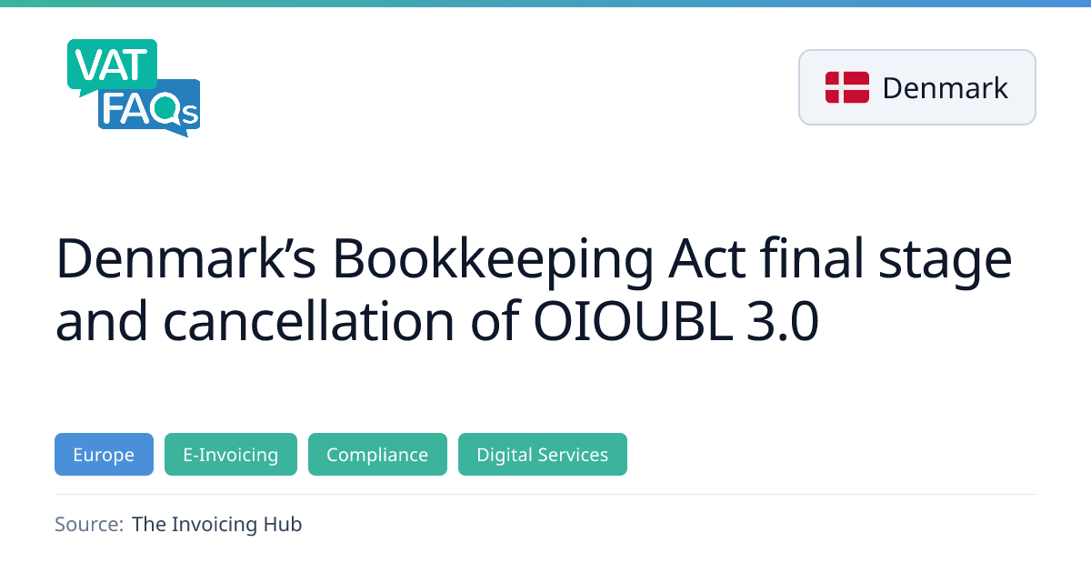 Denmark formally cancelled the OIOUBL 3.0 format on 14 January 2026.