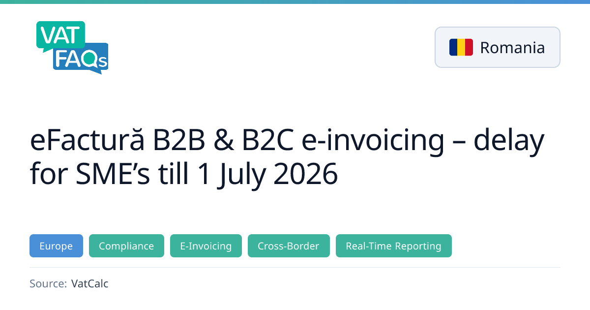 From 1 July 2026, SMEs with annual turnover below EUR 500,000 are exempt from full enforcement of Romania’s eFactură e‑invoicing.