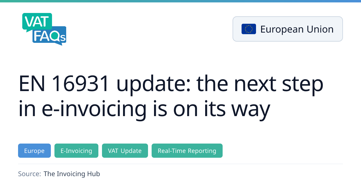 EN 16931‑1, the EU e‑invoicing standard, is being updated to a mid‑2026 release that expands B2B functionality and aligns with the ViDA initiative. The revision is not backward compatible, requiring migration for existing version 3 implementations, and will be formally approved in late January 2026 with publication concluding within six months. Key national roll‑outs include Germany’s XRechnung 4.0 and France’s CTC extensions.