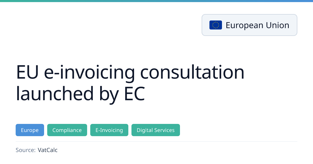 The European Commission has opened a public consultation to revise the EU e‑Invoicing Directive, offering three options that range from mandatory use of the EN 16931 standard for B2G transactions above thresholds to a full EU‑wide rollout with interoperability requirements and EU‑level governance. The consultation runs from 18 March to 10 June 2026 and seeks input on how to accelerate harmonisation ahead of the ViDA mandate, which will require structured e‑invoicing for intra‑EU B2B by July 2030.