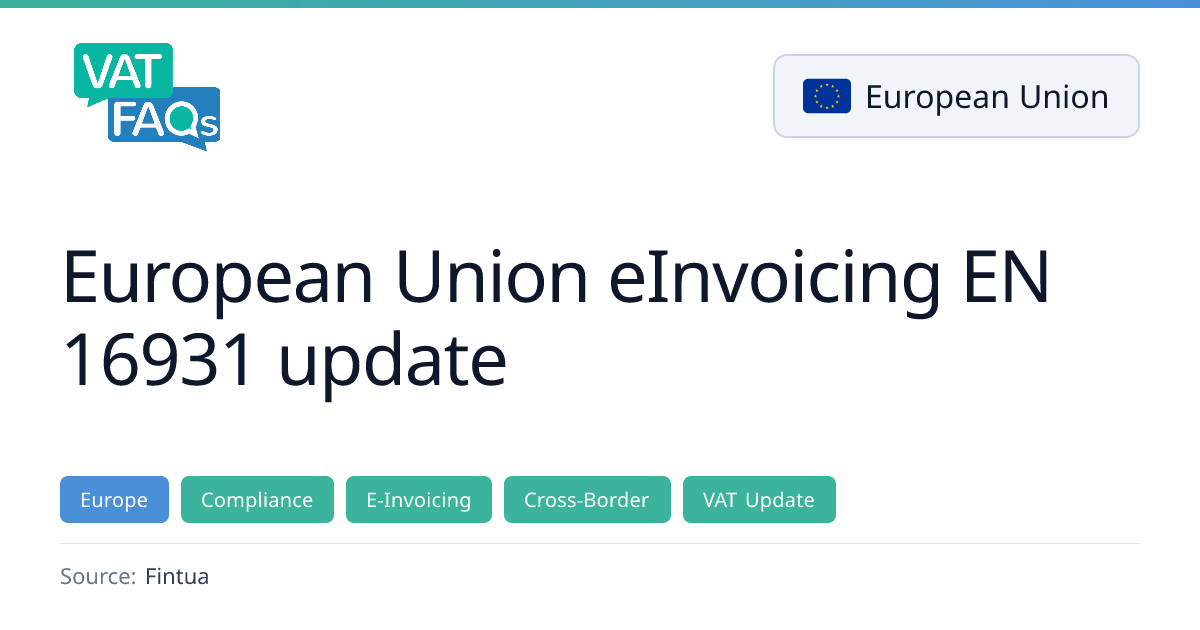 The EU has updated its eInvoicing standard EN 16931, adding B2B extensions, new technical specifications, and a semantic data model. The ViDA initiative now requires near real‑time VAT reporting for intra‑EU transactions, with a new Digital Reporting Requirements (DRR) message that is a VAT report, not an invoice. Businesses aligning early will avoid compliance issues and benefit from streamlined invoicing and reporting.
