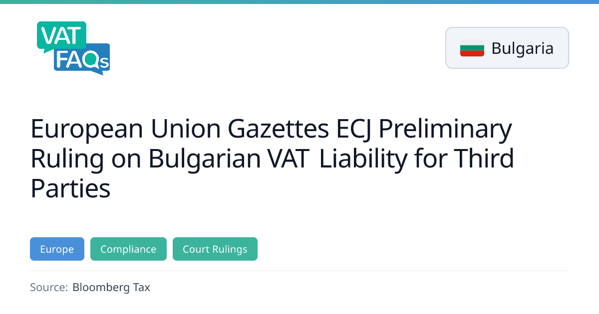 The European Court of Justice issued a preliminary ruling on Feb. 9, 2026, concerning Bulgarian VAT liability for third parties. In Case C‑121/24, a road‑transport company was assessed for unpaid VAT after the supplier was removed from the commercial register. The ruling clarifies that the taxpayer can be liable for the supplier’s unpaid VAT when the supplier fails to pay the chargeable VAT.
