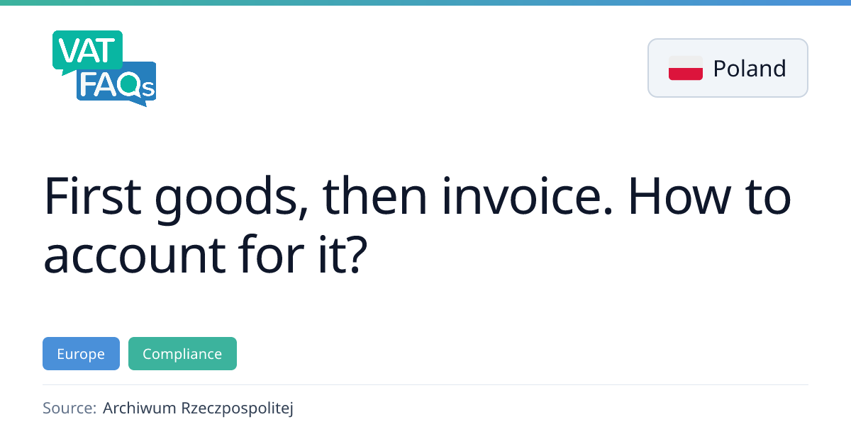 The Polish Ministry of Finance introduced a new regulation effective 1 January 2026 that changes how purchases are recorded in the tax books. If goods are delivered before the invoice is received, a detailed description must be prepared, but the entry is made on the invoice issue date, not the description date. Guidance is available in the Eureka system under reference numbers 670629 and 671795.