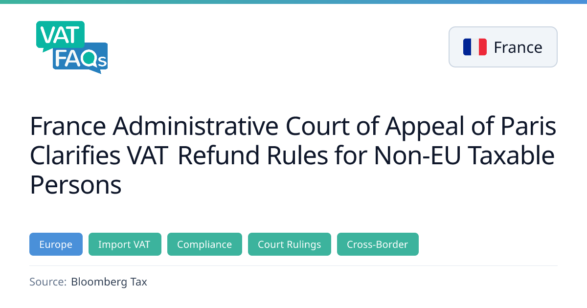 The French Administrative Court of Appeal of Paris issued Decision No. 25PA00785 on Feb. 4, 2026, clarifying that the ordinary law procedure for VAT refunds for taxable persons outside the EU does not apply when the taxpayer did not carry out transactions during the period. The UK company’s claim for an import VAT credit was partially denied by the Court of Montreuil and upheld by the Court of Appeal.