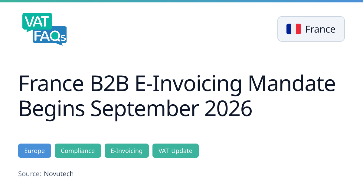 France confirmed its phased B2B e-invoicing rollout starting September 2026 for large enterprises, with full mandate for all businesses by September 2027. Factur-X is one of three mandatory formats.