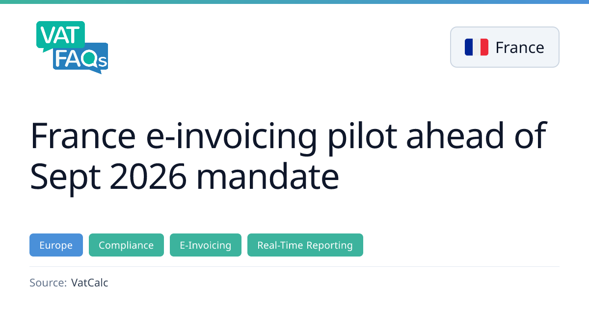France’s administration has finalized preparations for the mandatory B2B e‑invoicing and B2C e‑reporting regime that will take effect on 1 September 2026. A voluntary pilot began on 23 February 2026, involving 139 approved platforms and nearly 600 000 companies, with key milestones scheduled through February and a national communication campaign in March.