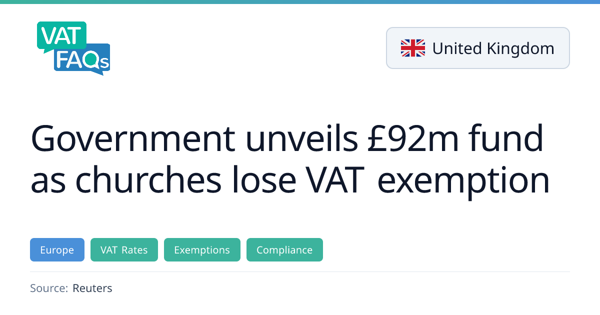 The UK government announced a £92m Places of Worship Renewal Fund on 22 Jan 2026, replacing the £23m Listed Places of Worship Grant Scheme that had allowed churches to reclaim VAT on repairs. The new fund removes VAT relief, meaning churches will now have to pay the standard 20% VAT on repairs, with the previous scheme having capped VAT‑exempt repairs at £25,000. The move aims to align churches with other heritage assets but raises concerns about the financial burden on congregations.