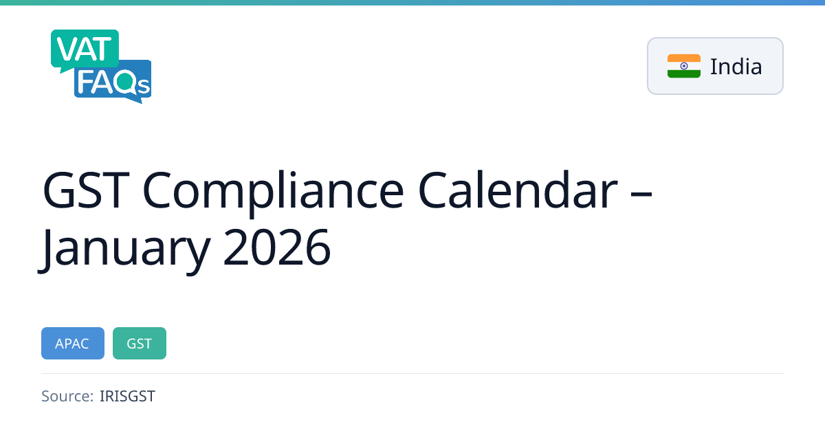 The article presents the GST compliance calendar for January 2026, detailing key due dates for monthly returns, payments, and the annual return. It serves as a reference for businesses to plan filing and payment schedules. The calendar is hosted by IRISGST and includes an interactive selector for other months and years.