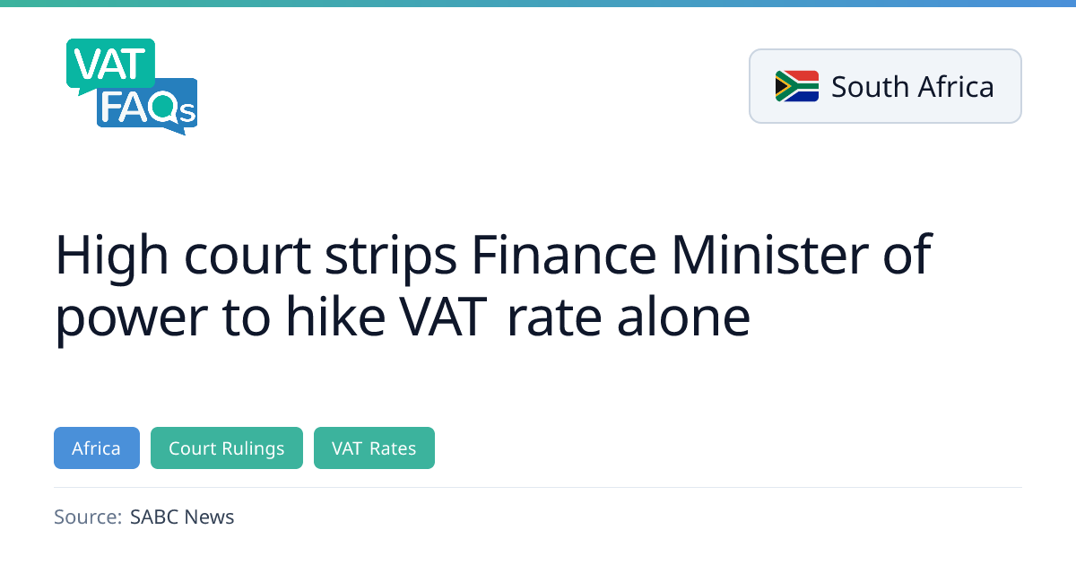 The Western Cape High Court declared Section 7 of South Africa's VAT Act unconstitutional, ruling that the Minister of Finance cannot unilaterally raise the VAT rate. The court imposed a 12‑month period before Parliament can confirm or reject any VAT rate adjustments, and the proposed 1% increase announced in the 2025 Budget Speech was withdrawn.