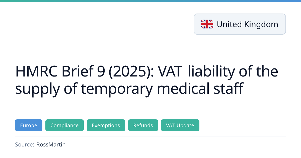 HMRC’s Brief 9 confirms that supplies of locum doctors are exempt from VAT under Item 5, Group 7, Schedule 9 of the VAT Act 1994. The guidance also explains how businesses can claim refunds for over‑declared output tax on such supplies made within the last four years, and notes that HMRC is reviewing policy and will issue updated guidance in due course.