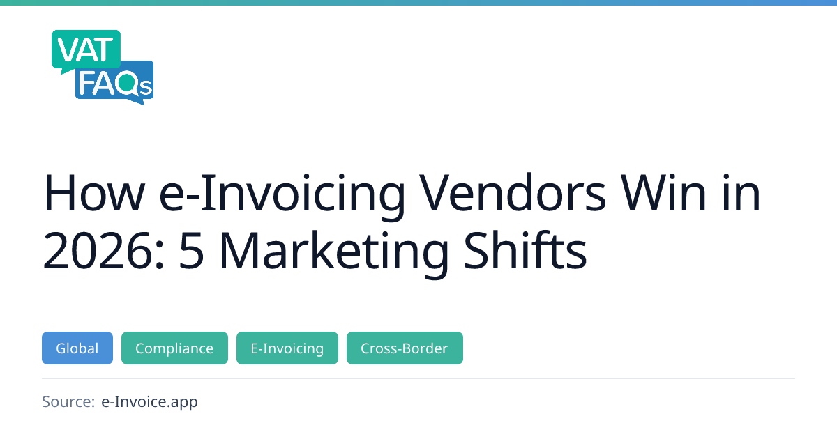 The article outlines five marketing shifts reshaping e‑invoicing vendor strategies in 2026, highlighting the importance of compliance thought leadership, real‑time compliance intelligence, and digital discovery tools. It provides market growth projections and the increasing need for structured, cross‑functional reference data.