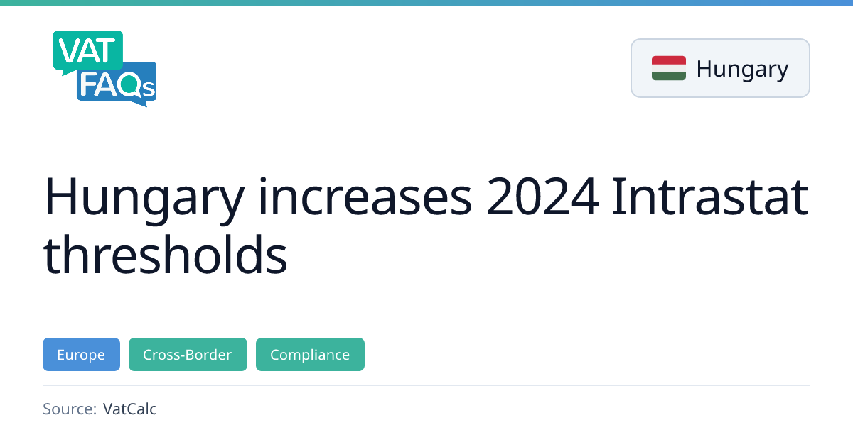 Hungary has raised its Intrastat reporting thresholds for EU intra‑community dispatches and arrivals effective 1 January 2026. The arrivals threshold rises to HUF 500 million and the dispatches threshold to HUF 200 million, while the statistical reporting thresholds remain unchanged. The electronic Intrastat form now requires detailed data such as goods description, commodity code, delivery terms, transport mode, destination and origin countries, weight or quantity, and invoice value, and since January 2022 also the country of origin for dispatches and the VAT ID of the recipient.