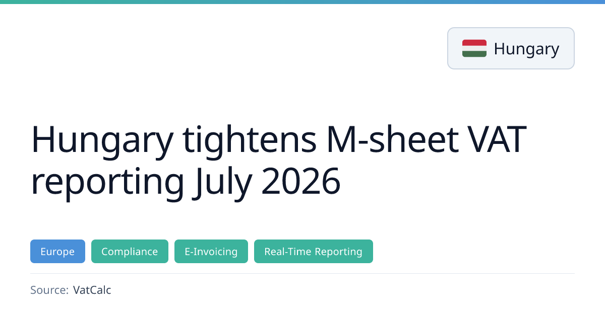 From 1 July 2026 Hungary will tighten its M-sheet VAT reporting, requiring detailed breakdowns of VAT charged and deducted by rate, and mandating new data fields. The ÁNYK filing system will be phased out by 31 December 2026, with taxpayers moving to the eVAT platform, and M-sheets will be abolished entirely from 2027. These changes stem from the 2025 Autumn Tax Package and represent a shift toward real‑time, deduction‑based reporting.