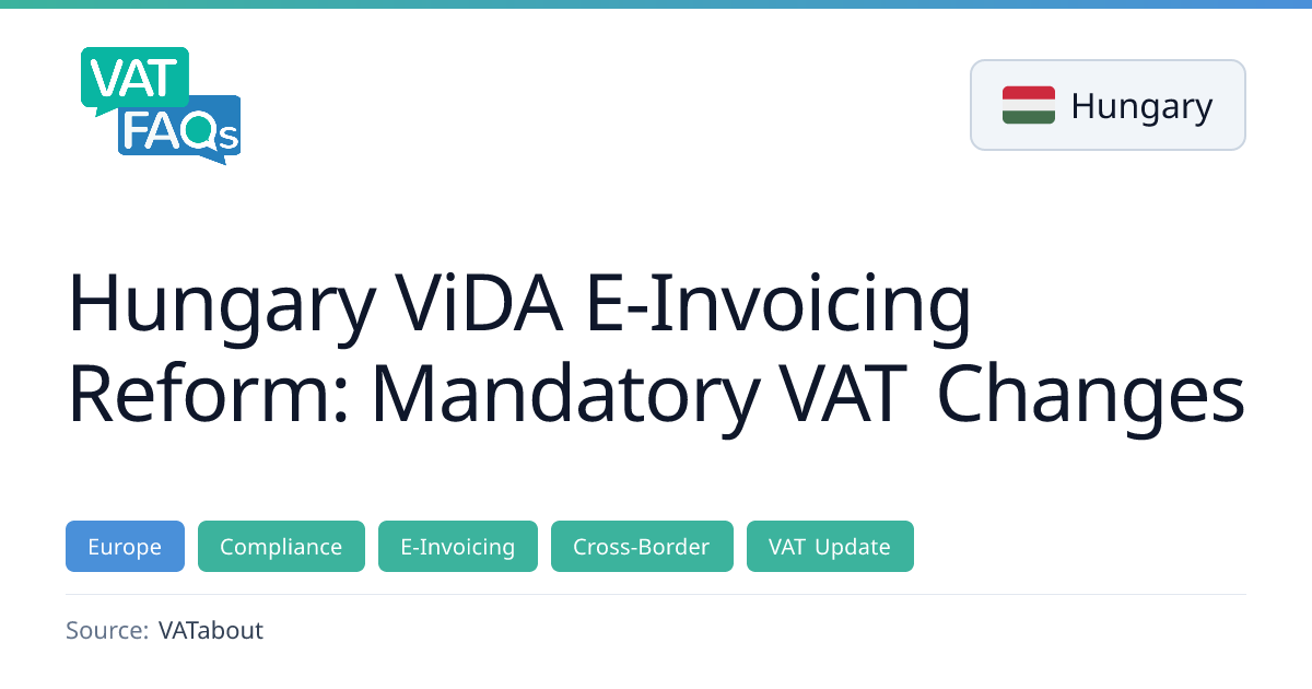 Hungary’s National Tax and Customs Office has released the ViDA implementation document outlining mandatory e‑invoicing and real‑time VAT reporting. The reform requires all taxable persons to exchange invoices in the EN 16931 format, prohibits email distribution, and introduces an AOR reporting obligation within five days. The five‑corner model will be used for transmission, with service providers optional.