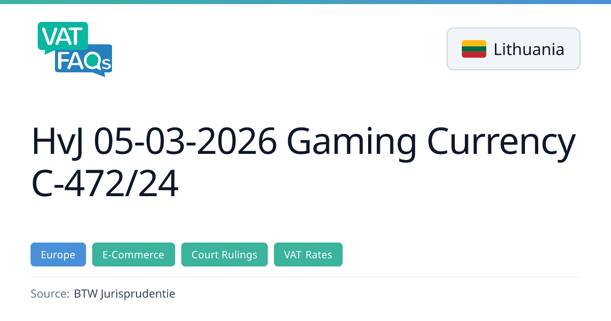 The EU's top court ruled that proceeds from trading virtual gold in online video games are subject to VAT, overturning any exemption. The decision supports Lithuania's efforts to collect tax on digital goods and has implications for VAT treatment of virtual goods across the EU.