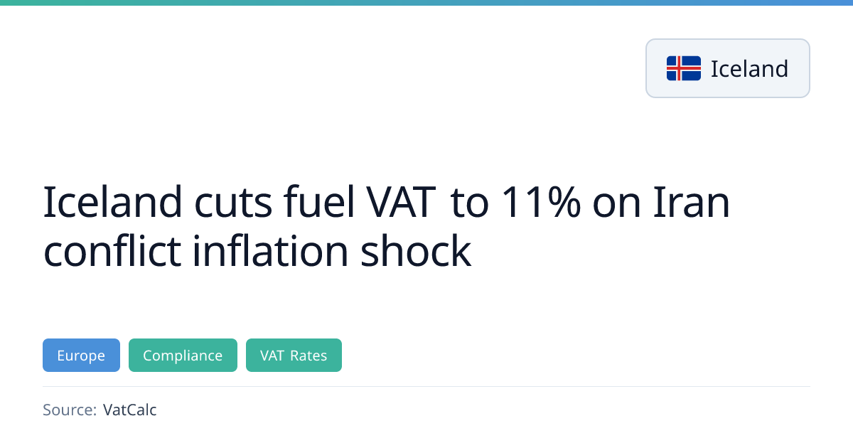 Iceland cuts fuel VAT to 11% on Iran conflict inflation shock | VATfaqs.com