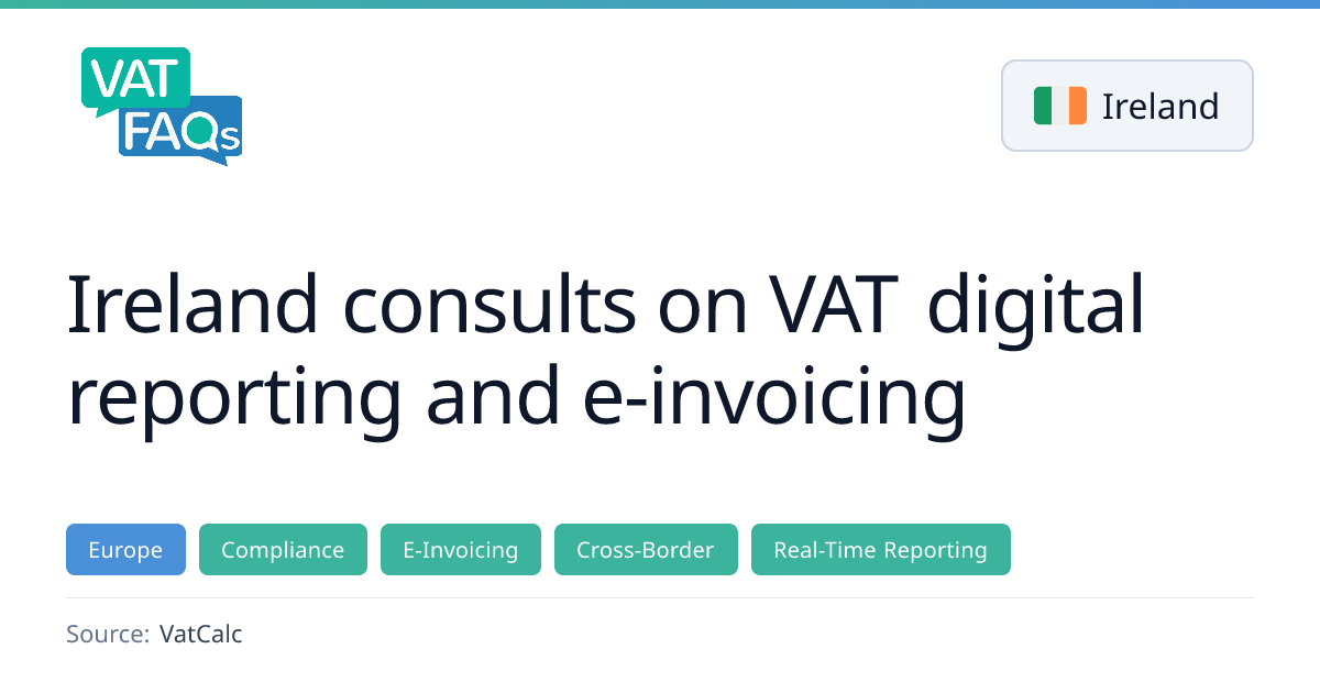Ireland’s Revenue has confirmed a phased launch of mandatory B2B e‑invoicing and e‑reporting, starting with large corporations in November 2028 and expanding to all taxpayers by November 2029. The EU‑wide ViDA e‑invoicing system for intra‑community transactions will come into force in July 2030. The initiative follows a public consultation that ran from 13 October 2023 to 31 January 2024.