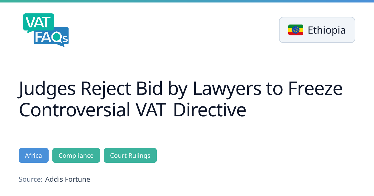 Ethiopian judges on 21 February 2026 rejected a bid by lawyers to freeze a controversial VAT directive, leaving the directive in effect. The decision centers on whether VAT compliance can be compelled without a threshold, a question that has implications for legal professionals and businesses. The ruling clarifies that the current VAT registration requirements remain unchanged.