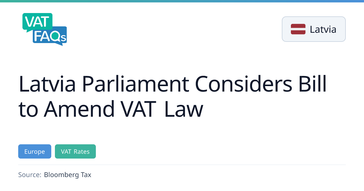 Latvia's parliament has accepted Bill No. 1206 for consideration, which proposes reducing the VAT rate on firewood and thermal energy for household use from 12% to 5% between Jan. 1 and April 30, 2026. The bill also requires that invoices issued at the 12% rate during that period be corrected by the law’s entry‑into‑force date.