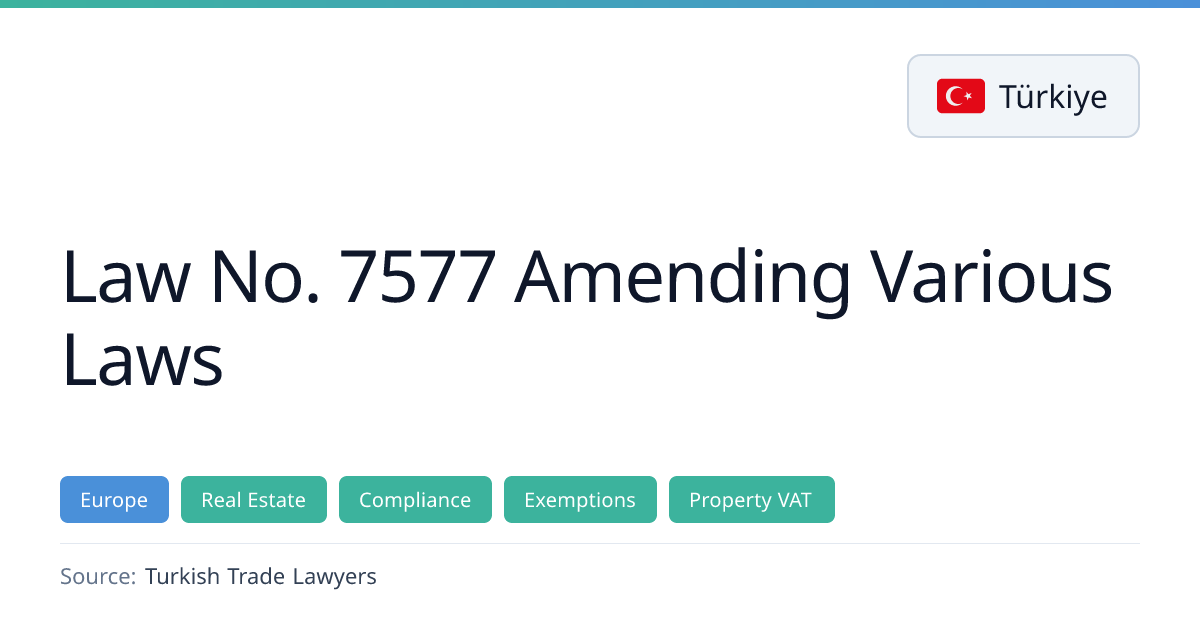 Law No. 7577, published on 17 April 2026, introduces significant amendments to Turkish tax, social security, energy, and real‑estate legislation. Key changes include new VAT exemptions for property transfers to public authorities, expanded non‑deductibility of advertising for gaming sectors, broadened free‑zone income benefits, and a presidential power to adjust unemployment insurance contributions by up to 50%.