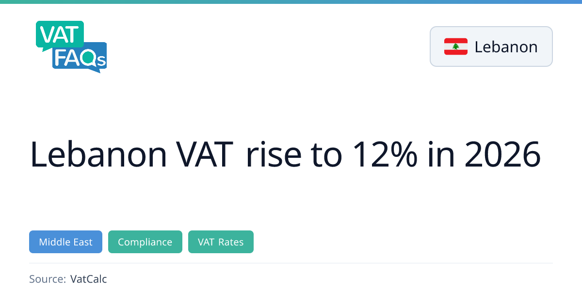 Lebanon plans to increase VAT from 11% to 12% pending parliamentary approval; the change will take effect once Parliament approves it.