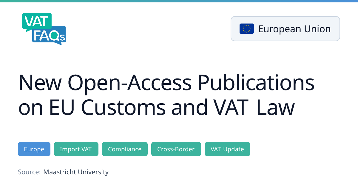 Maastricht Centre for Taxation has released two free, open‑access books – "VAT in a Day" and "Customs in a Day" – that provide concise introductions to the EU VAT Directive and the Union Customs Code. The publications aim to equip readers with a solid grasp of EU indirect tax law within a single day and are supported by leading Dutch universities and tax firms.