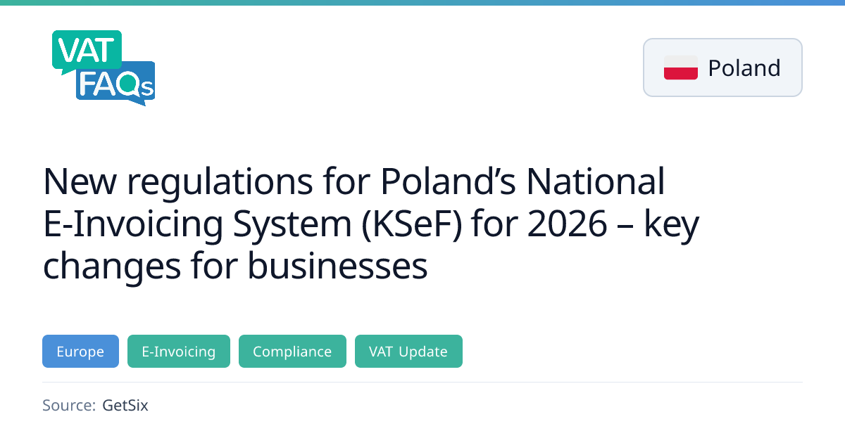 Poland’s Ministry of Finance and Economy has signed four executive regulations that finalize the technical and organisational aspects of the National E‑Invoicing System (KSeF). The new rules set exemptions for certain services, change simplified invoice handling, and introduce mandatory JPK_VAT reporting with KSeF identifiers from 1 February 2026. Businesses must update their accounting and ERP systems to comply with the new authorisation, authentication and data‑scope requirements.