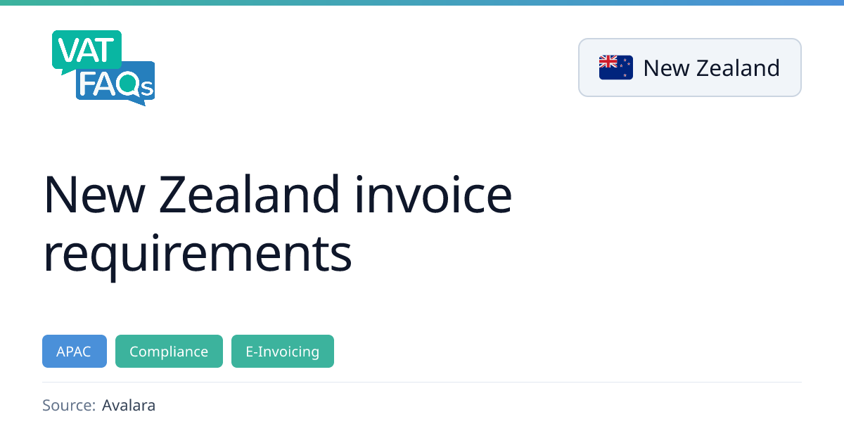 New Zealand GST invoices must be issued within 27 days of the supply and retained for at least seven years. They must contain specific details such as supplier and customer information, invoice date, description, taxable amount, GST, and gross amount. Invoices below NZD 1,000 may omit customer details and detailed GST calculations, and no tax invoice is required for supplies of NZD 50 or less.